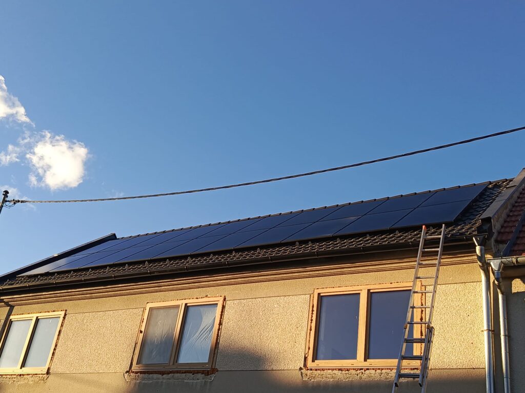 Na rodinném domě ve Vyškově jsme nainstalovali 20 panelů AIKO 450 Wp (celkem 9 kWp), řízených střídačem Solax X3-Hybrid-15.0D a propojených s baterií T-BAT 5,8 o kapacitě 17,4 kWh.